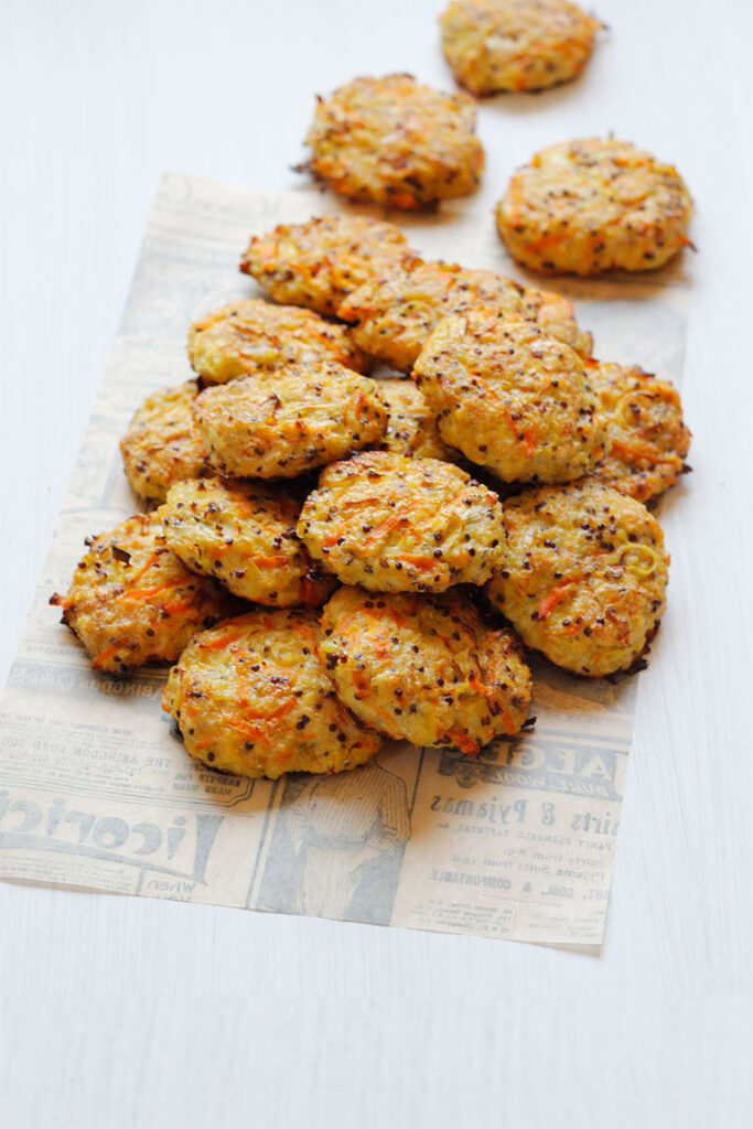Ces galettes de poulet contiennent 4 supers aliments minceurs : du quinoa, du poulet, des poireaux et des carottes.