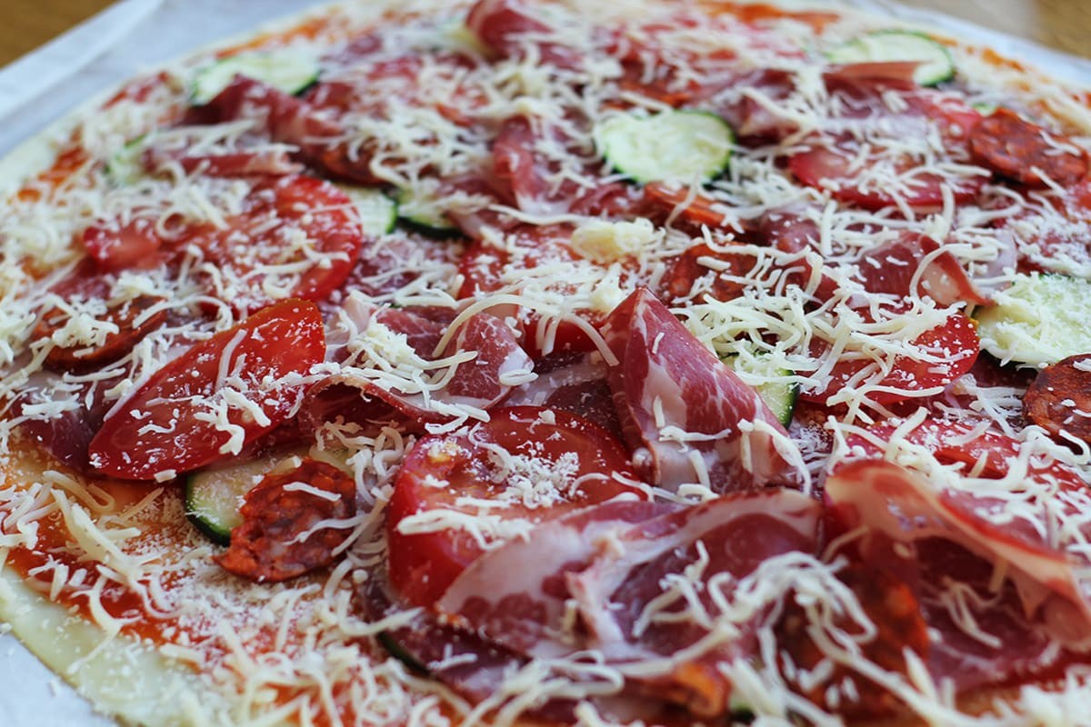 La recette de ma pizza préférée… une pâte fine, quelques légumes, le goût puissant de la coppa qui se marie à merveille aux épices du